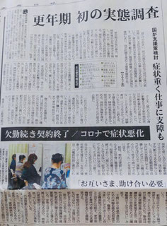 2024年10月21日:【新聞】産経新聞に掲載「更年期障害で鳥取県は男女とも対象の特別休暇導入 東京・江戸川区は講座開催」