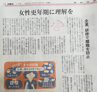 2022年2月7日:【メディア】産経ニュース「女性更年期に理解を 企業研修で離職防止」に掲載。